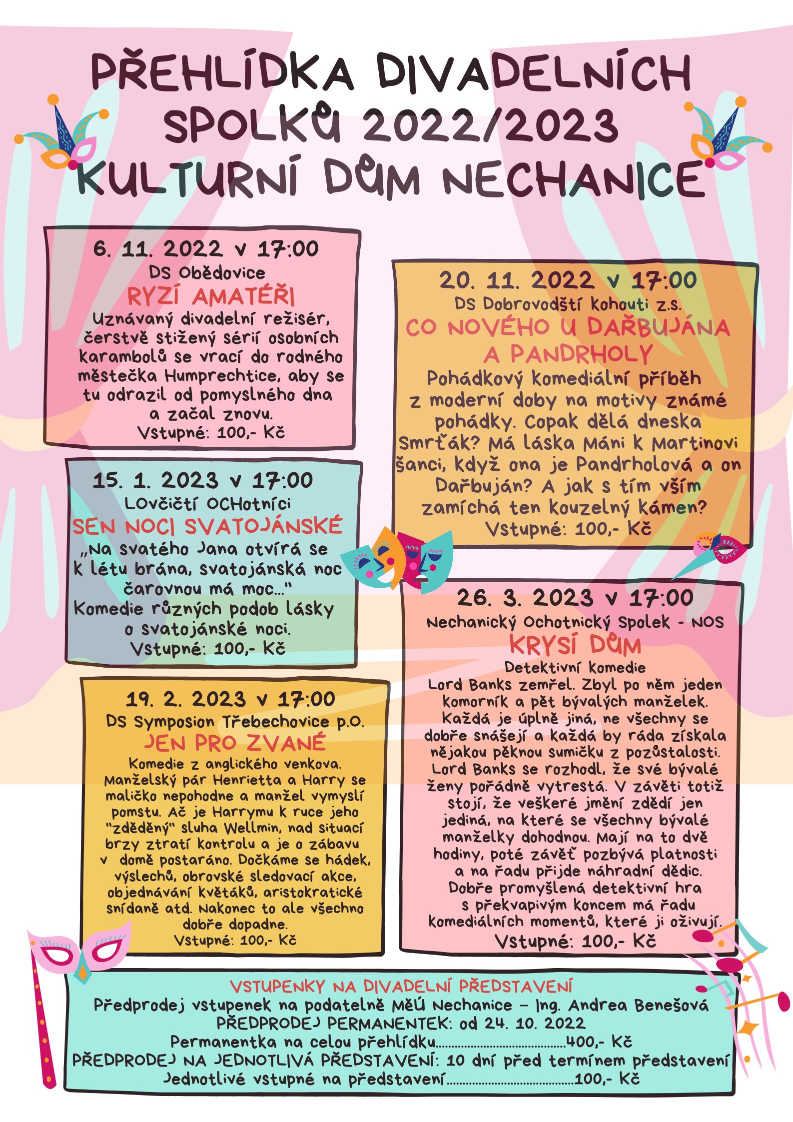 Přehlídka divadelních spolků, kulturní dům Nechanice 6.11.2022 - 26.3.2023